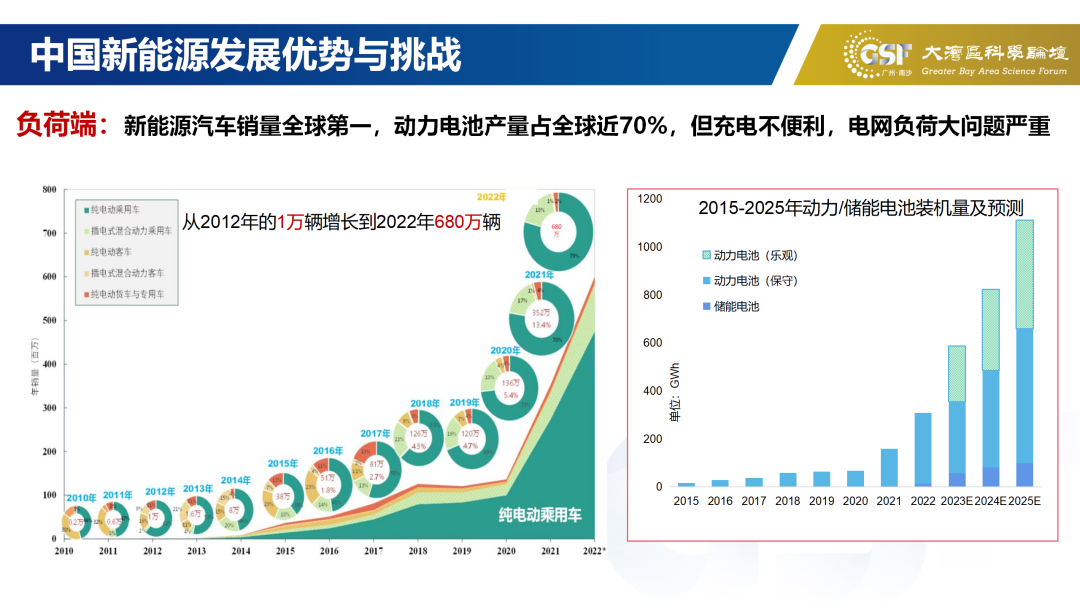 2023年5月20日,在大湾区科学论坛之粤港澳科技创新发展论坛上,清华大学深圳研究院新能源技术创新中心主任、全国政协常委、中国科学院院士欧阳明高指出,中国电力系统正在发生革命性变化。就此,欧阳明高院士做了《大湾区视角下的新能源汽车与新能源革命》的主题演讲。