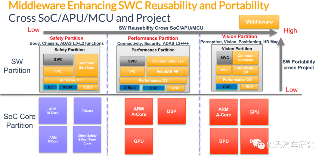 从SoC角度看中间件,虚拟机和BSP是一体的,BPU指的就是AI运算。图片来源:大陆汽车