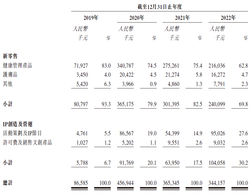 透过IP创造及营运,公司基于包括二次元风格化身(即周同学)在内的专属独有的明星IP创建定制品牌及相关IP内容。周同学及其相关元素已登记为公司与杰威尔音乐共同拥有的商标系列。公司于2021年起通过创造以庾澄庆先生为中心的其他明星相关IP,即既来之则乐之相关IP,以及以刘畊宏先生为中心的综艺节目,公司亦与著名作词人方文山先生及流行乐队南拳妈妈成员分别订立谅解备忘录,从而实现IP组合多元化。随着刘畊宏在2022年初大火,公司在2022年IP运营的收入大增,占比30%以上。