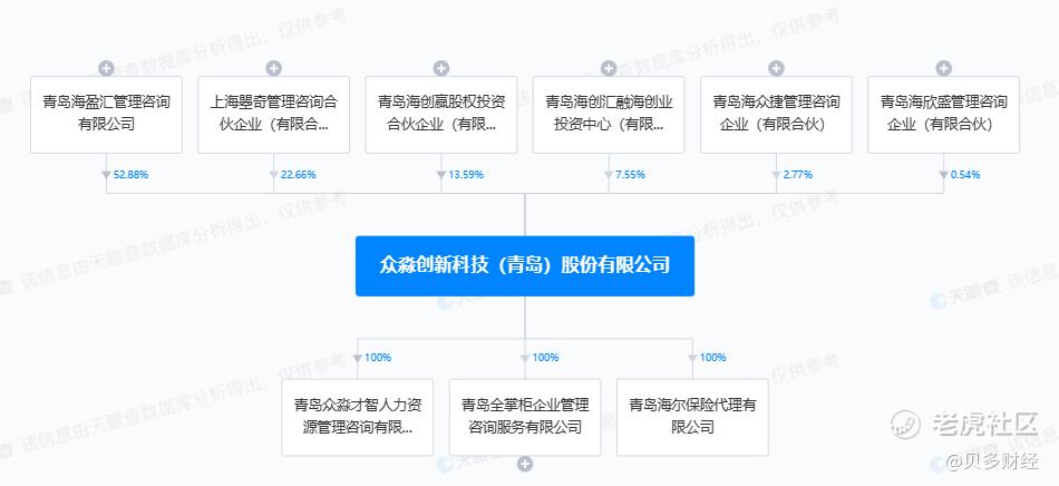 天眼查信息显示,众淼创科成立于2017年3月,前称报青岛全掌柜科技有限公司、众淼创新科技(青岛)有限公司等。目前,该公司的注册资本为1.06亿元,法定代表人为鹿遥,股东包括青岛海盈汇、上海曌奇、青岛海创汇等。