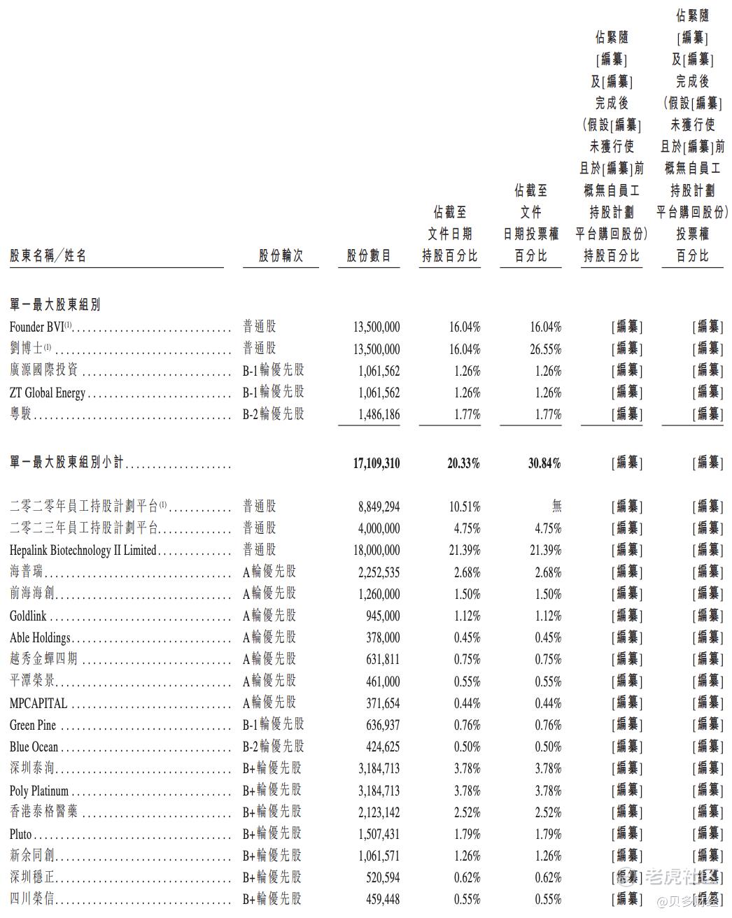其中,前海海创持股1.50%,Goldlink持股1.12%,Taitong Fund通过Able Holdings持股0.45%,越秀金蝉四期持股1.82%,平潭荣景持股0.55%,邓开平通过MPCAPITAL持股0.44%,Green Pine持股0.76%,Blue Ocean持股0.50%,深圳泰洵持股3.78%;