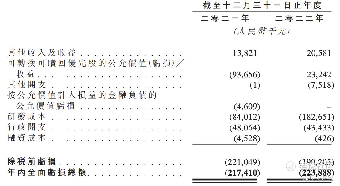 截至目前,君圣泰并未产生任何收入,并处于持续亏损状态。2021年、2022年,君圣泰的净亏损分别为2.17亿元、2.24亿元。君圣泰在招股书中解释称,绝大部分亏损来自研发成本及行政开支。