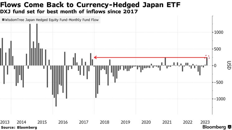 ETF追踪 | 日本的货币对冲ETF有望创下2017年以来的最佳月度流入