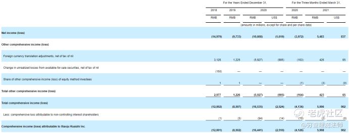2021年第一季度净利55亿调整后EBITA(非 GAAP)亏损55亿元主要是由于在2021年3月底分拆从事社区团购业务的实体橙心优选,滴滴上市主体在橙心优选(Chengxin Technology Inc.)中的权益减少为少数,因而社区团购不再计入合并财务报表。确认了人民币 91 亿元的投资收益。此外,滴滴确认了一项股权投资处置收益 33 亿元人民币。