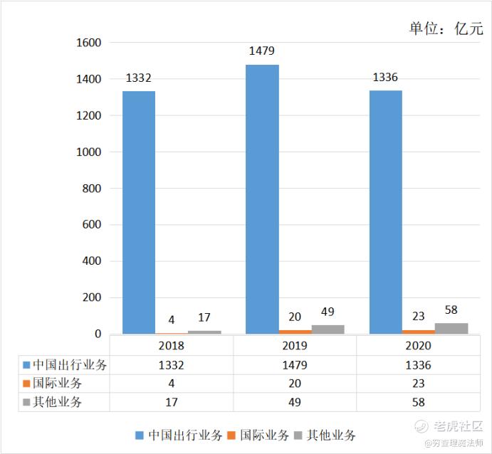 滴滴收入来自于中国出行业务、国际业务、其他业务三部分。中国出行业务包括网约车、出租车服务、代驾、顺风车,国际业务包括网约车和外卖,其他业务包括共享单车、共享电车、汽车解决方案(主要是充电、加油、维护和维修,租赁业务等)、同城货运、社区团购、自动驾驶、金融服务。