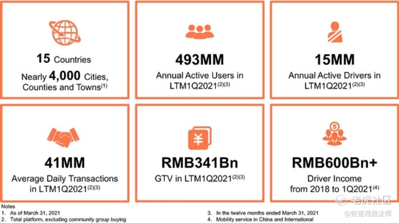 根据 CIC 的数据,滴滴是全球最大的移动技术平台,在滴滴的平台上为超过 4.93 亿的年度活跃用户提供服务,并在截至 2021 年 3 月 31 日的十二个月内促进了 4100 万笔日均交易。