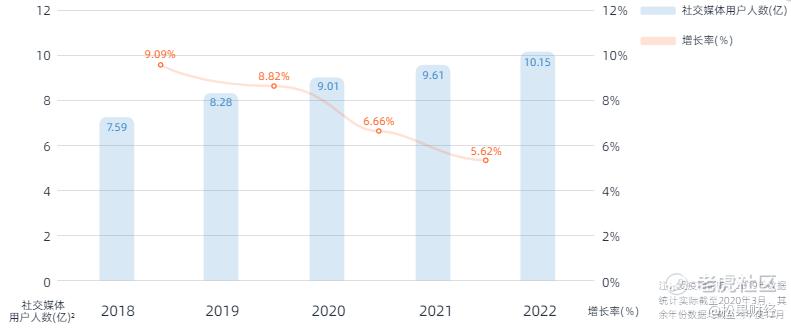 根据KAWO科握《2023中国社交媒体平台指南》,截至2022年12月,我国网民数已突破10.67亿,互联网普及率达75.6%,其中社交媒体用户人数占全体网民的95.13%。用户数量接近天花板,社交媒体行业正在逐步放缓发展脚步。