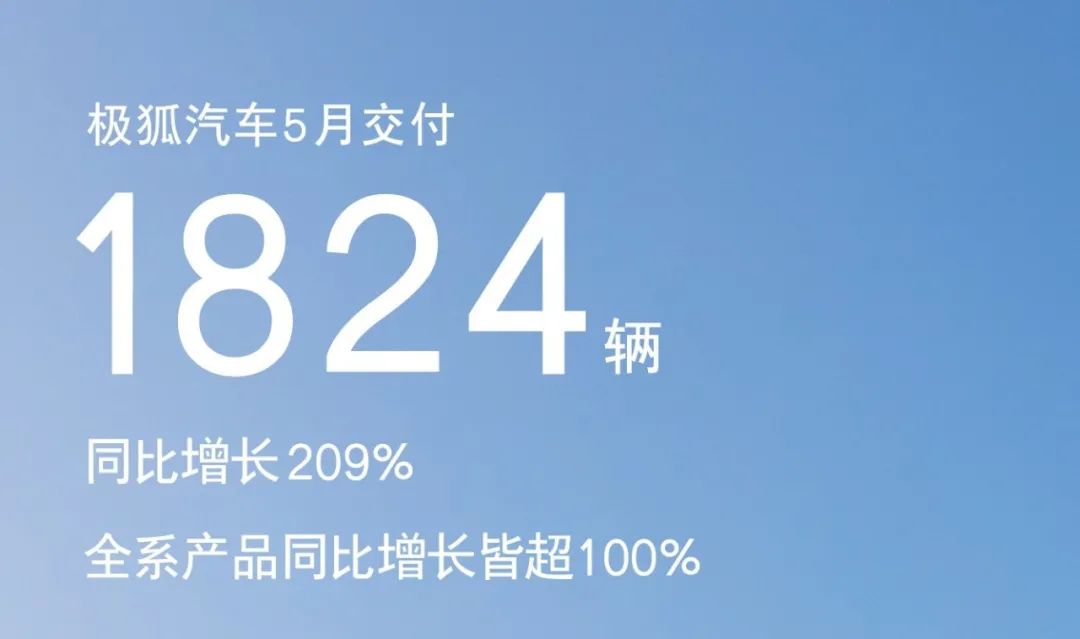 极狐汽车 5 月交付 1824 辆,同比增长超 2 倍。