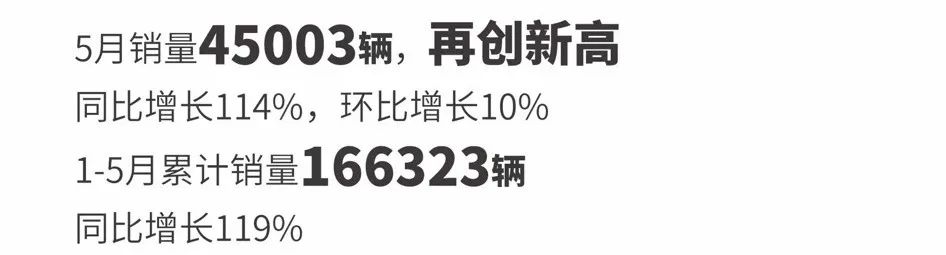 广汽埃安 5 月销量 45003 辆,同比增长 114% ,环比增长 10%。