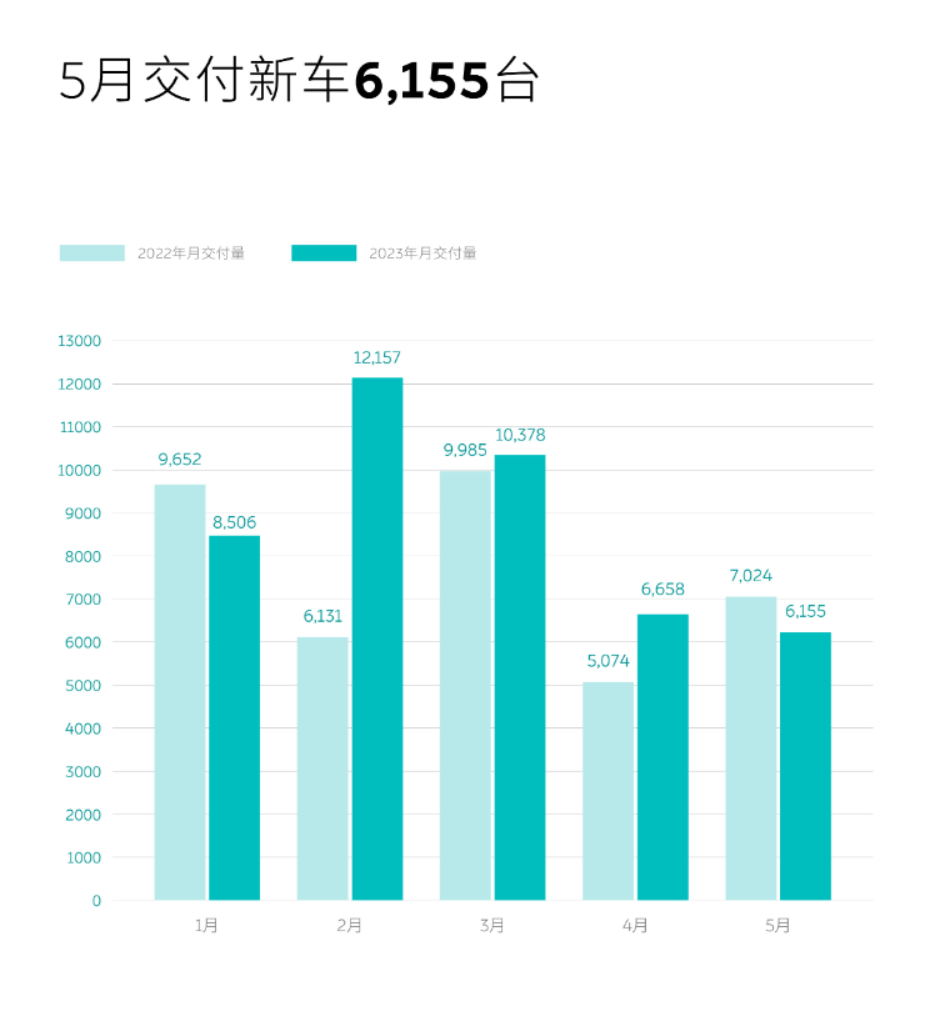 2023 年 1-5 月,岚图累计交付 12024 台,与去年同期相比有较大幅度提升。