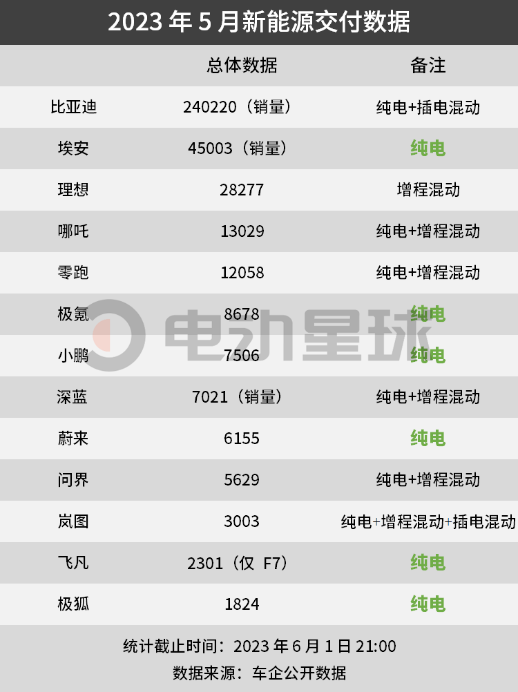 5 月新能源交付盘点:纯电蛰伏,混动抬头?