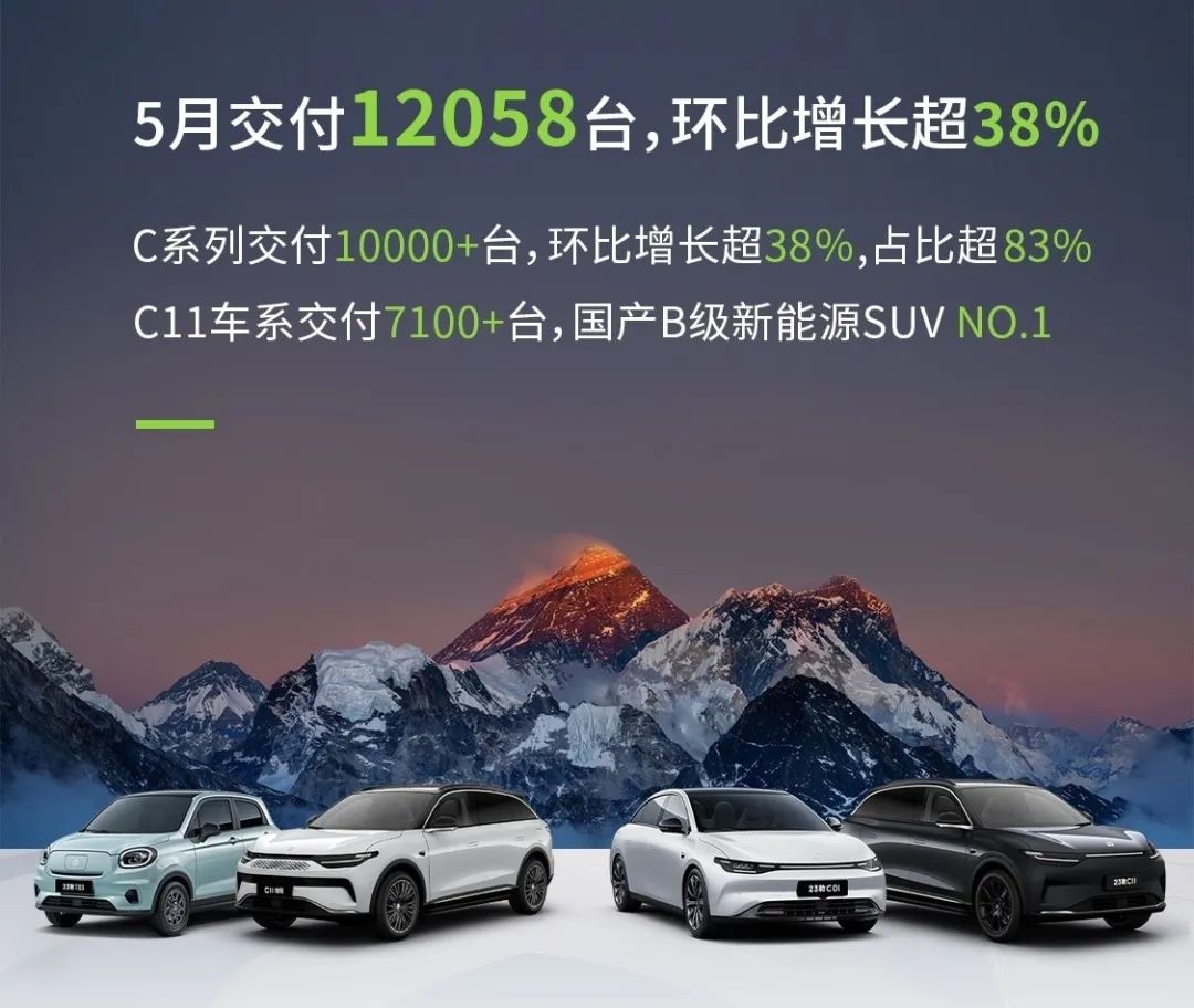 零跑发布 5 月交付量数据:12058 台,环比增长超 38%。