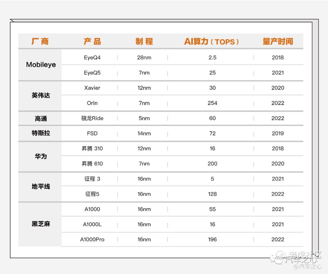 国内车企对自动驾驶芯片的选择,集中在英伟达 Orin 、英特尔 Mobileye、地平线、黑芝麻等企业。