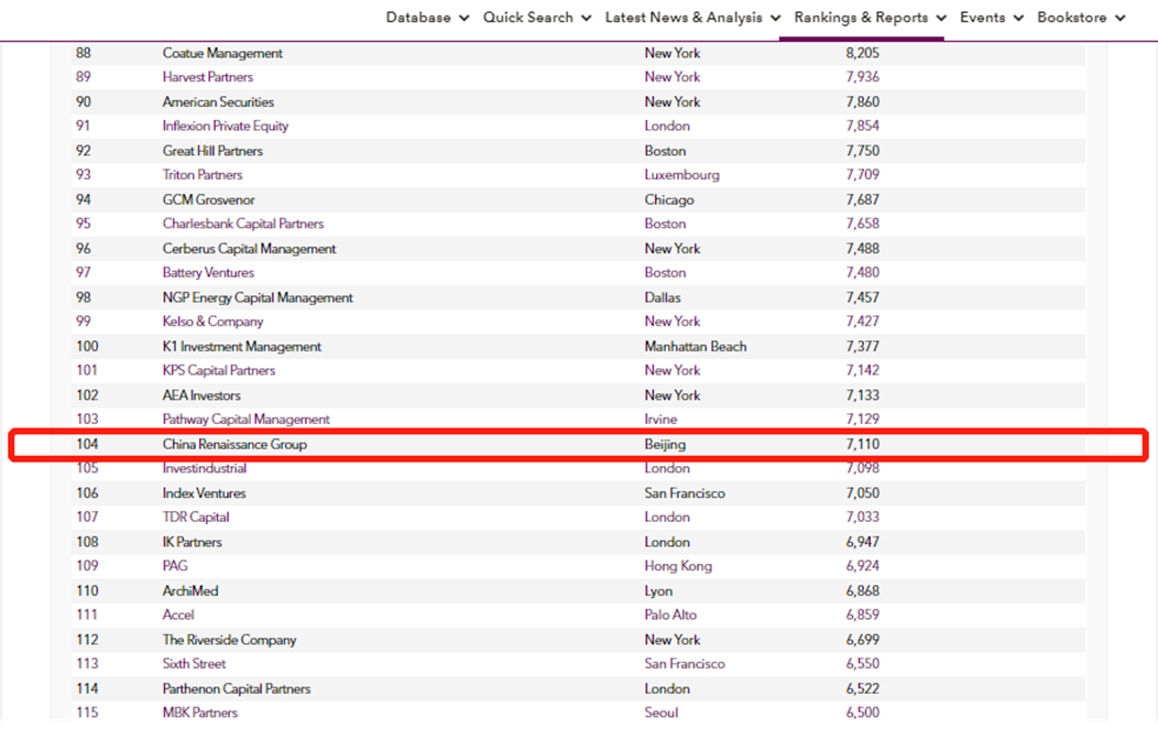 PEI 300榜单由权威的行业媒体《国际私募股权》(Private Equity International)推出,旨在追踪全球私募股权行业发展轨迹,被认为是业界最知名的榜单之一。榜单按照过去五年各家机构在私募股权投资领域的融资额进行排名。