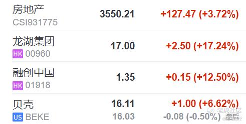 周五中概股普涨,无论港股还是美股中概。有一个刺激因素,是市场传闻政府将发布一揽子房地产行业刺激措施,所以房地产板块涨幅居前,龙湖地产涨超17%,融创中国涨超12%,贝壳也涨了6%以上。