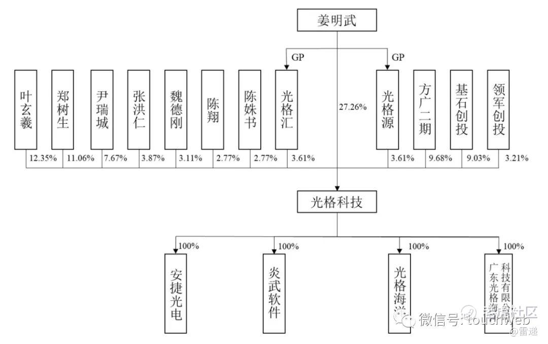 姜明武为公司实际控制人。IPO前,姜明武直接持有公司27.26%的股份,并通过员工持股平台光格源、光格汇分别控制公司3.61%、3.61%的股份,合计控制公司34.48%的股份。