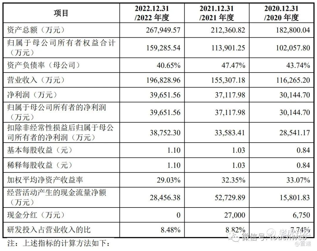 招股书显示,天玛智控2020年、2021年、2022年营收分别为11.63亿元、15.53亿元、19.68亿元;净利分别为3亿元、3.71亿元、3.97亿元;扣非后净利分别为2.85亿元、3.36亿元、3.88亿元。