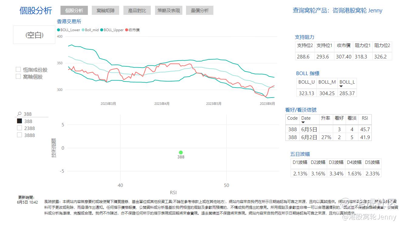 $香港交易所(00388)$ 现升0.794%,股价从全日低位301至全日高位307.4,股价波动率 2.104%。最近10个交易日当中,港交所股价录得4日上升,在此期间上升了1.12%。