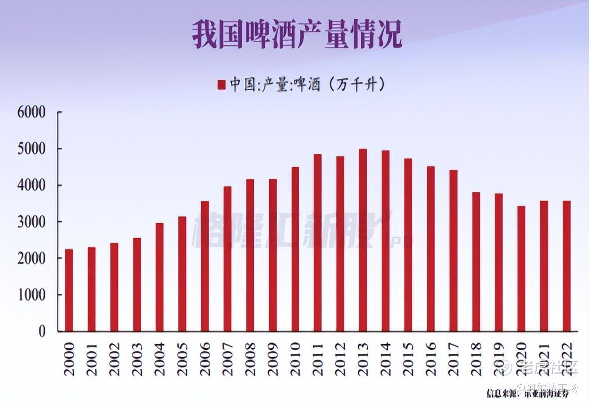 陈成稳面临的是,竞争强手如林,市场饱和。2013年国内啤酒产量约为5000万千升,达到历史最高点后,开启了一路下跌。价格大战硝烟弥漫,个别企业一瓶啤酒价格到达0.5元,啤酒行业由“大家都有钱赚”瞬间进入激烈内卷时期,要活下去唯有做大。