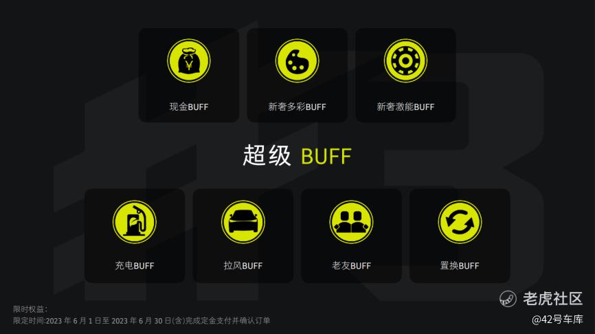 此外,6 月 30 日前下定的用户除了常规的 2,000 抵 6,000、6 年 15 万 km 质保三电终身、3 年免费流量等这些可以看成行业标配的购车权益之外,还可以享受配置升级。