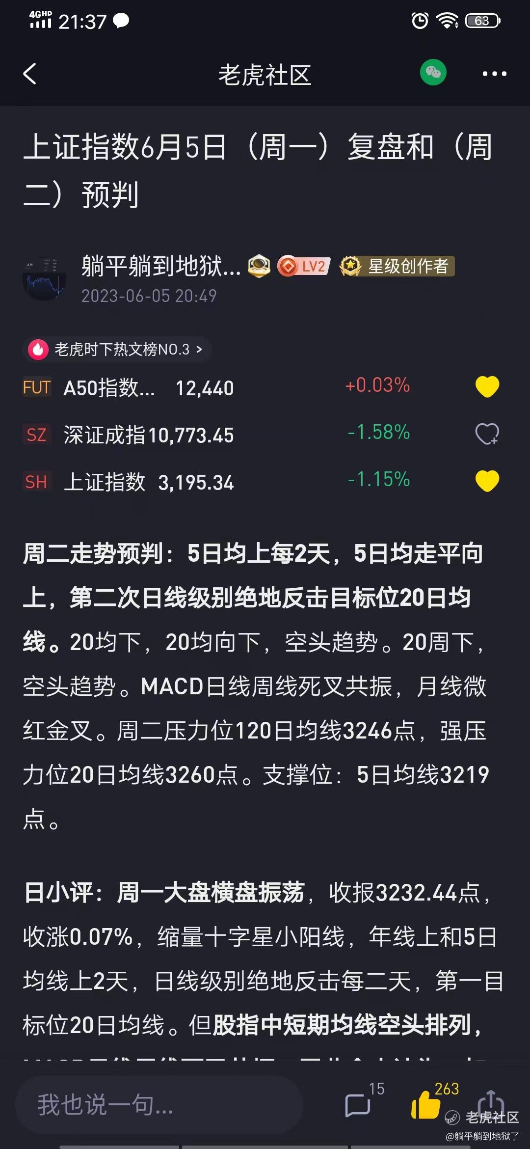 上证指数6月5日(周二)复盘和(周三)走势预判