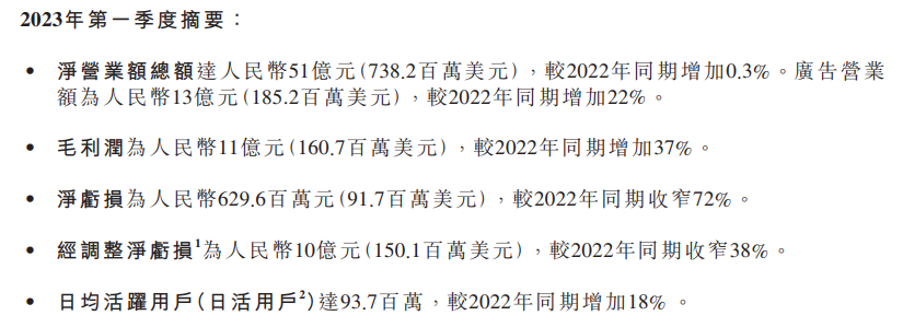 在财报中,B站表示,第一季度的毛利率从16%提升至22%,主要是由于实施了多项成本控制措施,包括销售和营销开支同比减少了30%,这使得一季度的净亏损同比显著减少了72%。接下来,B站仍将继续执行这些措施,进一步提高利润率。