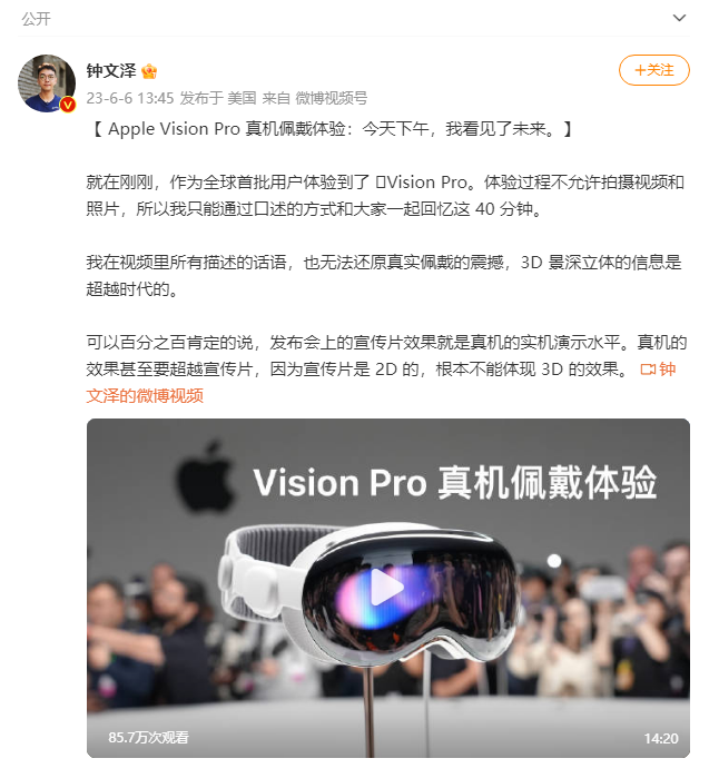 但我们想强调的是,科技产品的更新迭代,最重要的是由0-1的第一步,当第一步踏出后,往后的技术会随着开发者的进入而飞速发展,Chatgpt即是一个很好的例子。知名科技博主在今日体验Vision Pro后表示,这项产品让他看到了未来。