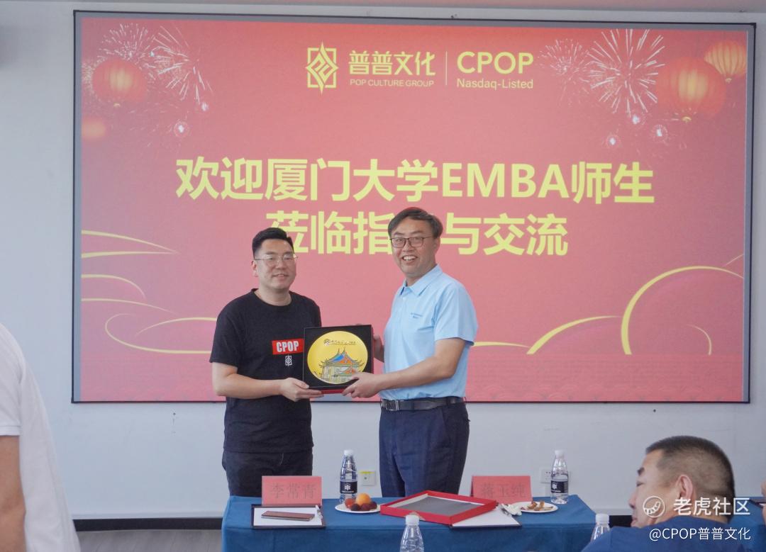 最后,厦门大学EMBA中心主任李常青代表厦门大学EMBA为普普文化送上参访礼物,为本次交流活动画上圆满句号!