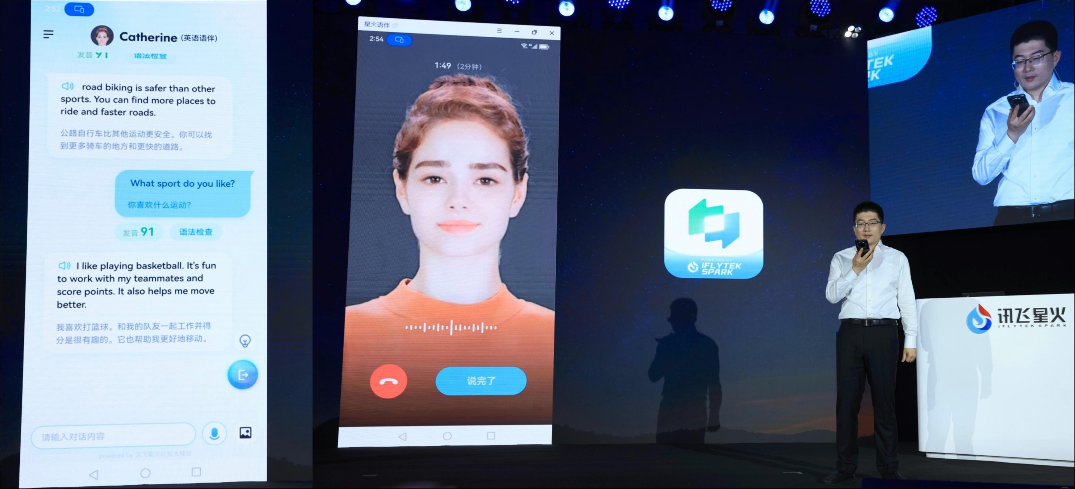 发布会现场,科大讯飞将5月6日发布的AI口语助手升级为星火语伴APP,更好满足大学生、商务人士的口语陪练需求。在大模型加持下,星火语伴APP可以进行开放式对话、情景交流,像口语老师一样陪练,并进行实时口语纠错。用户还可以用视频对话的方式,与虚拟人老师面对面沟通,身临其境的练习口语。此外,APP还支持9种语言文本、语音和图片翻译。