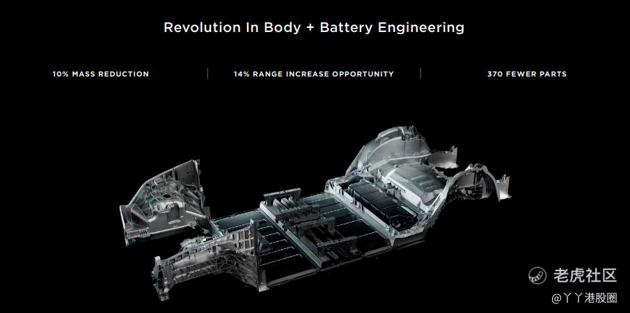 2020年9月22日,特斯拉在电池日发布会上宣布ModelY将采用一体压铸生产车身后底板总成,替换掉原来的370个零件,最终可以实现汽车总重量降低10%,续航里程增加14%,同时计划未来用3个大型压铸件拼接成整个下车体总成。