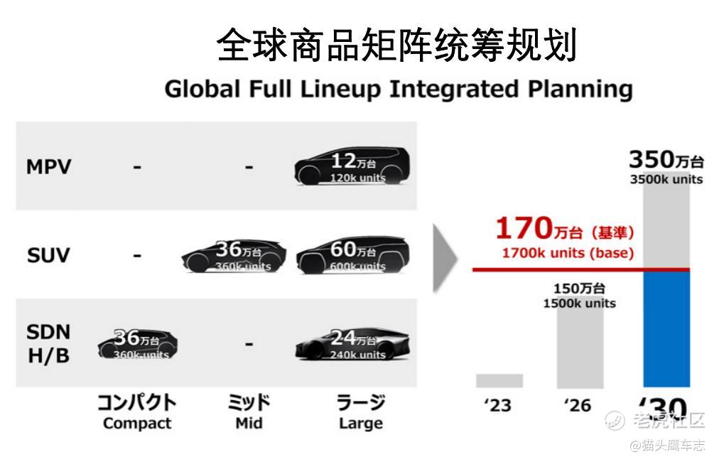 通过这一系列的改革,持续推进全球商品矩阵的统筹规划,丰田计划在2026年,面向市场推出次世代BEV产品。在2030年,全球BEV产品销量预计达到350万台,其中,BEV Factory研发的新产品将达到170万台。采用次世代电池,实现世界一流水平的更低电耗。