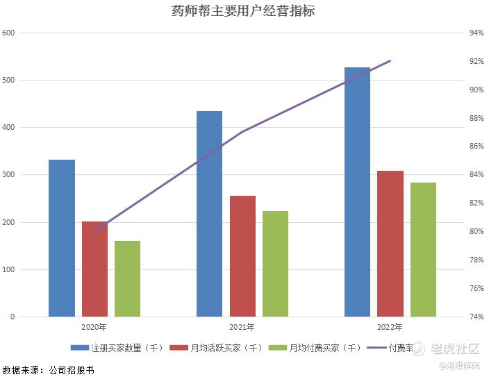 高基数、强粘性的用户,有助于药师帮形成口碑效应,降低公司获取新客的成本。以上用户经营指标是在公司平台业务补贴率以及公司销售及营销开支比重逐年下降情况下实现的增长。于2020年-2022年,公司平台业务补贴率由1.2%降至0.7%,销售及营销开支比重由12%降至9.3%。而同时,药师帮的用户付费率则逆势增长,2022年达到92%,较2020年大幅提升了12个百分点。