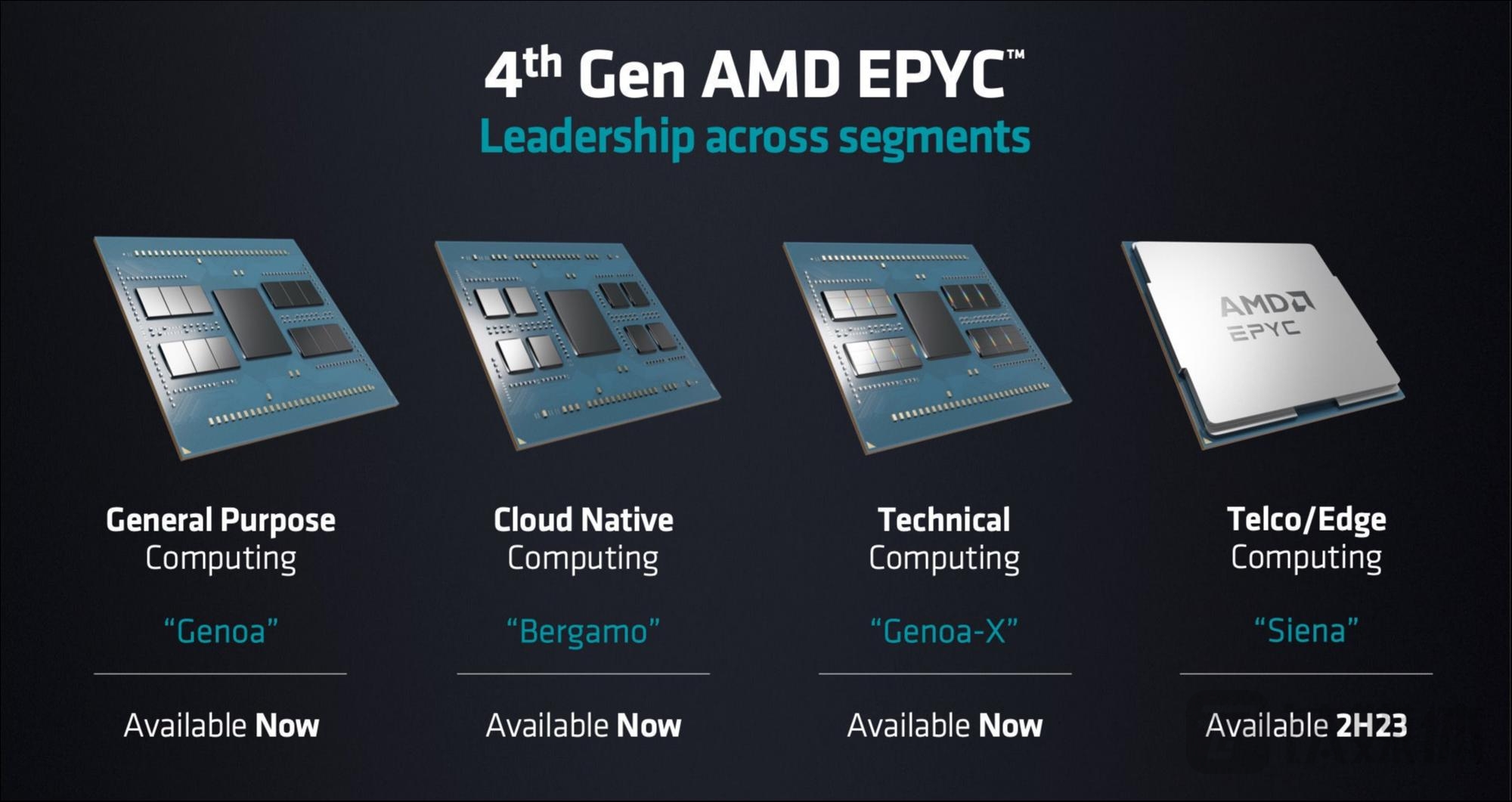 其中包括全新第4代AMD EPYC服务器CPU处理器Genoa;专为云计算和数据中心计算、拥有128核的第四代霄龙vCPU 处理器Bergamo;全新专为生成式 AI 打造、拥有1530亿个晶体管的 AI 加速芯片Instinct MI300X;拥有1460亿个晶体管的Instinct MI300A,以及移动端AMD Ryzen PRO 7040系列移动处理器与Ryzen AI,并且宣布亚马逊AWS、甲骨文Oracle等云计算厂商合作部署。
