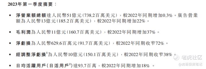 ●增值服务方面,一季度营业额为22亿元,同比增加5%。公司称主要是由于加强了商业化能力建设,以及直播服务的付费用户数量增加所致。