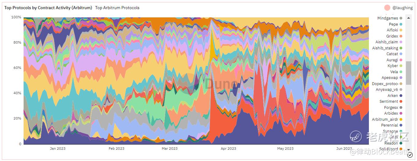 -用户参与热情高,平台在所有 Arbitrum 的链上活动中占比一度超过了 20%;