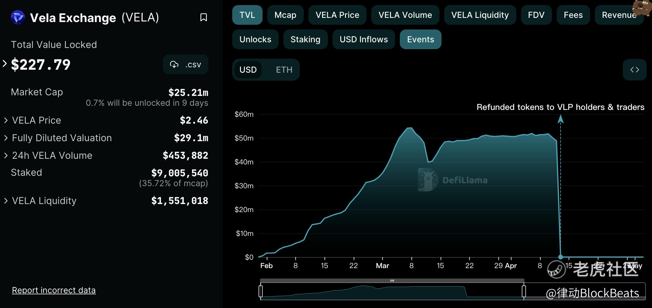 VELA Token 初始分配与解锁周期(来源:DeFiLlama)