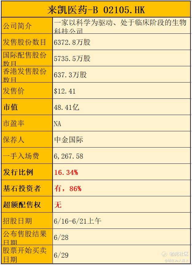 #港股ipo#来凯医药-B基石拿走86%份额,小赌怡情一把!