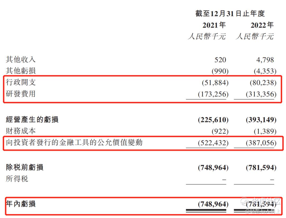 注意2021~2022年度公司其研发费用分别为1.73亿及3.13亿元,而公允价值变动-5.22亿及-3.87亿元才是亏损大头。