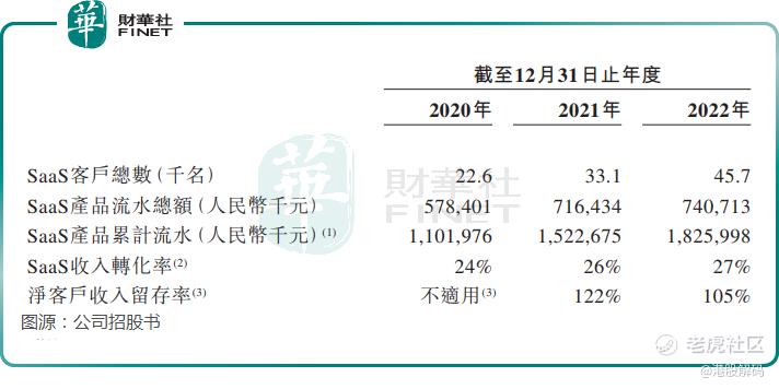2020年-2022年,聚水潭SaaS客户总数由2.26万名增长至4.57万名,SaaS产品流水总额由5.78亿元增长至7.41亿元。