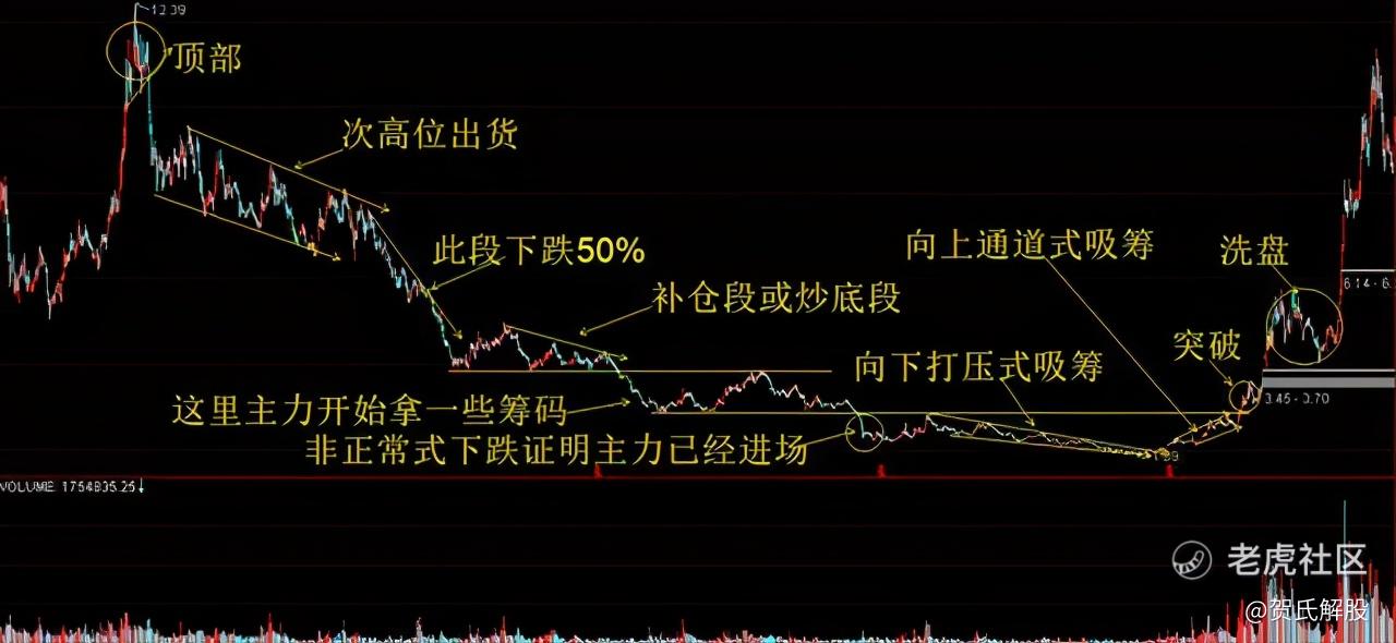 用一句话概括:所有非正常价格异动都主力而为非散户力所能及。主力吸筹是在非常隐蔽的情况下进行的,但还是能够从分析图中看出主力的身影,这要对主力操盘有所了解。下面我们分析一下主力是如何操作的。主力操盘前要有操盘计划主要分三个内容:①筹措资金及使用时间,寻找可操盘标的,去标的公司调研并打好关系;②设置进场价格区间,吸入多少筹码,吸筹所用时间,吸筹所用资金;③设置出货价格区间及出货方案。主力进场后吸筹和出货两个阶段是最重要的,其中间阶段的洗盘拉升是可随市场行情不断调整的。