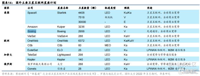 在企业层面,主要巨头包括美国SpaceX旗下的Starlink("星链"),亚马逊的Kuiper、波音公司的Boeing,英国的OneWeb等,卫星数量规模都在几千颗以上。