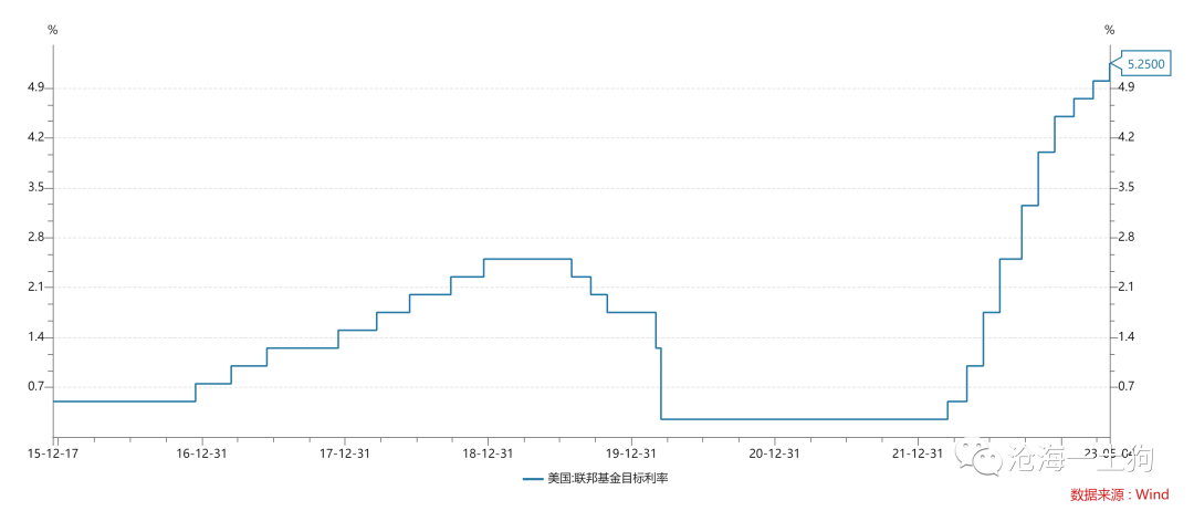 目前,联邦基金利率的区间是【5.0-5.25%】,美国的货币主管当局会把真实的资金利率定在5.08%附近。