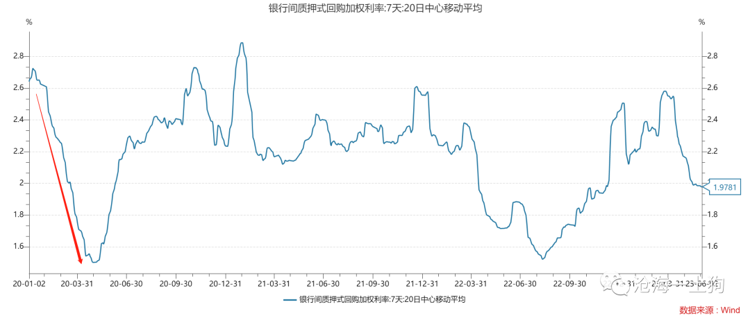事实上,我们曾经有过类似的经验,19年底疫情爆发之后,政府搞政策刺激,多次降准降息,主动影响资金利率中枢,把它压低到一个很低的位置。