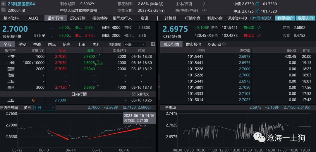 受此影响,十年国债活跃券230004的收益率大幅下行,一度下行至2.62%。