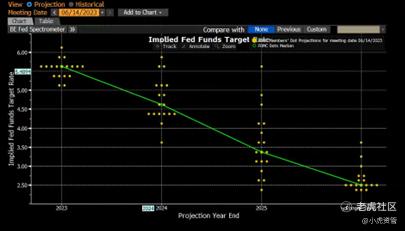 所以,根据最新的6月点阵图,23年年底基准利率会加到5.5%-5.75%。尽管现在市场并不买账,但是从历史经验来看,点阵图对半年范围内的基准利率预测成功率还是不错的!