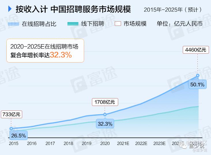 根据灼识咨询报告,受数字新经济业态发展、创新创业政策利好、企业人才竞争加剧等因素驱动,中国在线招聘市场规模预计将由2020年的551亿元增至2025年的2234亿元,年复合增长率为32.3%,在线招聘市场求职者渗透率由2020年的17.9%上升到2025年的34.9%。