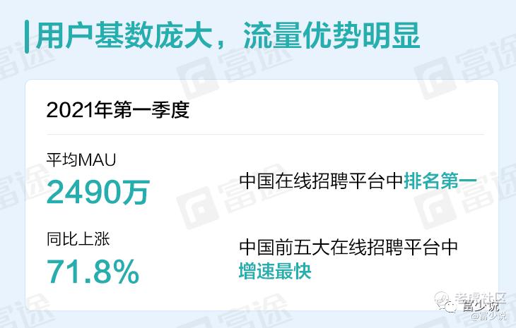 平台最看重的是人,特别是平台的MAU、DAU等相应的数据,根据招股书,截至2021年3月31日,BOSS直聘MAU活跃用户数达3060万,2020年平均MAU为1980万,较2019年MAU同比上涨73.2%。