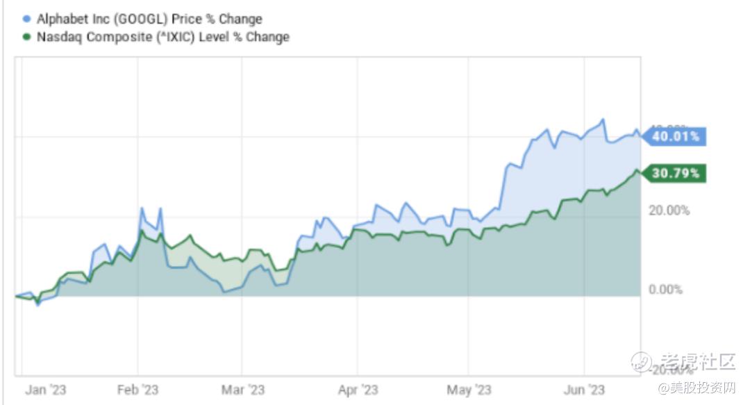 另外,谷歌云可能是投资者今天想要购买Alphabet股票的原因。谷歌云为全球1000家最大公司中的近60%提供服务,是Alphabet业务中增长最快的部分,2023年第一财季(截至3月31日)收入增长28%,甚至击败了主要的云竞争对手微软Azure和亚马逊AWS。