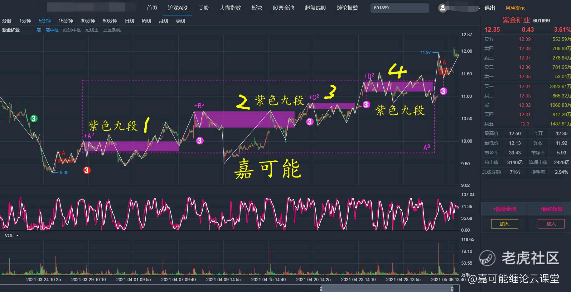 紫金矿业(601899)连续性的紫色九段组合类型,典型的缠论强势力度。