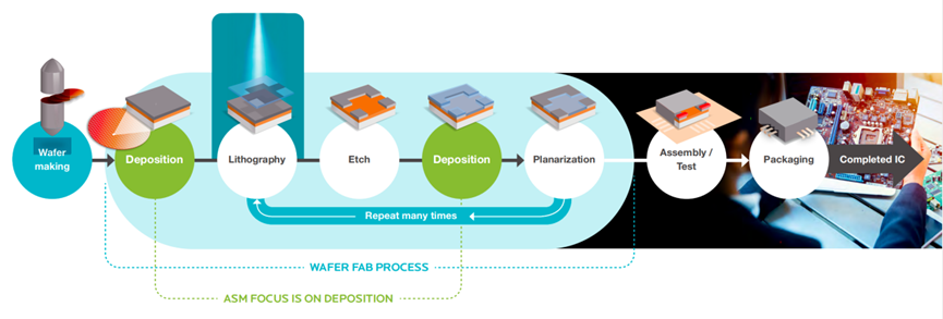 半导体制造的基本流程以及ASM专注的领域(图源:ASM)